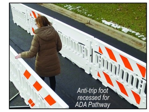 ● Multi-functional barricade system meets ADA requirements, 72”L x 38”H