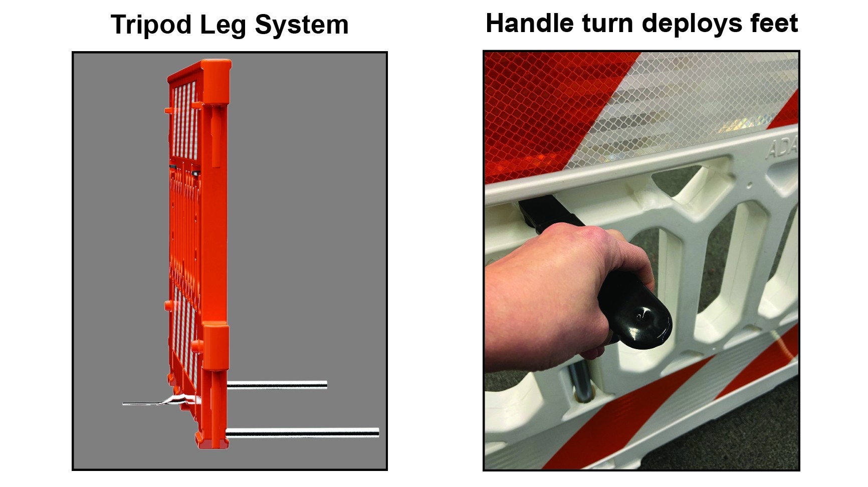 ● Easy handle turn deploys barricade feet!