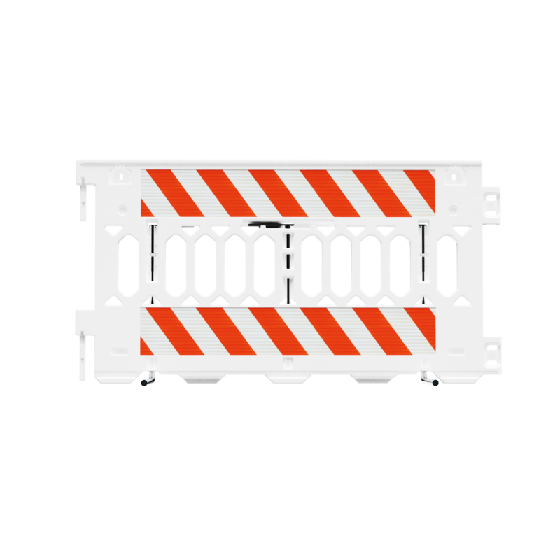 Plasticade's ADA Pathcade Pedestrian Barricade system creates and ADA compliant pedestrian pathway. Can be ordered without reflective sheeting, reflective sheeting on the Top of panel only, or on Both Top and Bottom of panel and on 1 side only or both sides of panel. MASH APPROVED