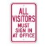 ALL VISITORS MUST SIGN IN AT OFFICE- Red on White
